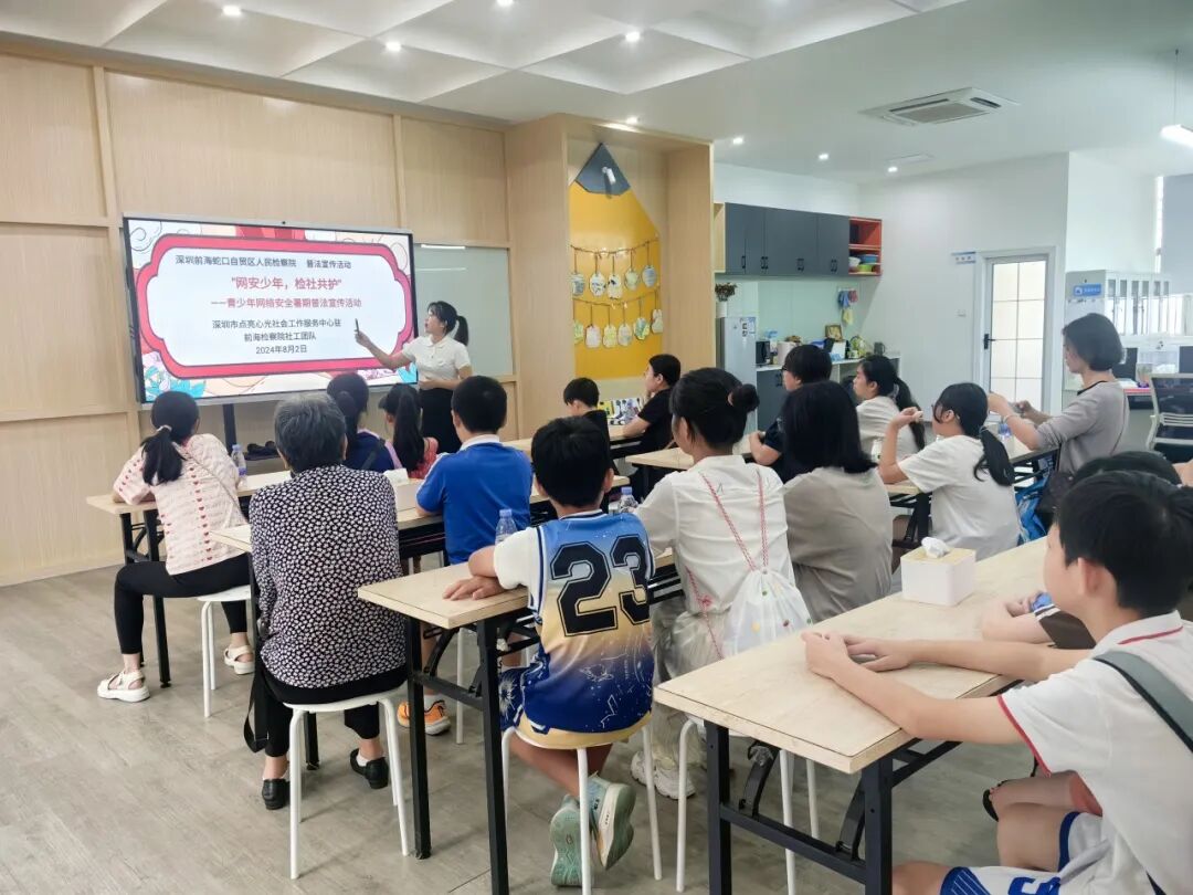 为积极响应国家关于加强未成年人网络保护工作的号召,进一步提升青少年的网络安全意识和自我保护能力,2024年8月2日,前海检察院联合深圳市点亮心光社会工作服务中心,在蛇口街道未成年人保护工作站为辖区内的15名困境儿童家庭开展了“网安少年,法护成长——青少年网络安全暑期普法宣传活动”。